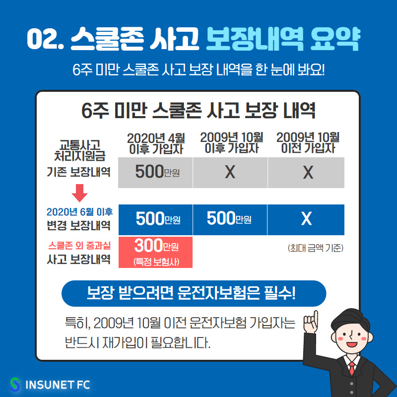 특정 보험사를 통해 스쿨존 외 6주 미만의 9가지 중과실 사고도 보장 받을 수 있어요.